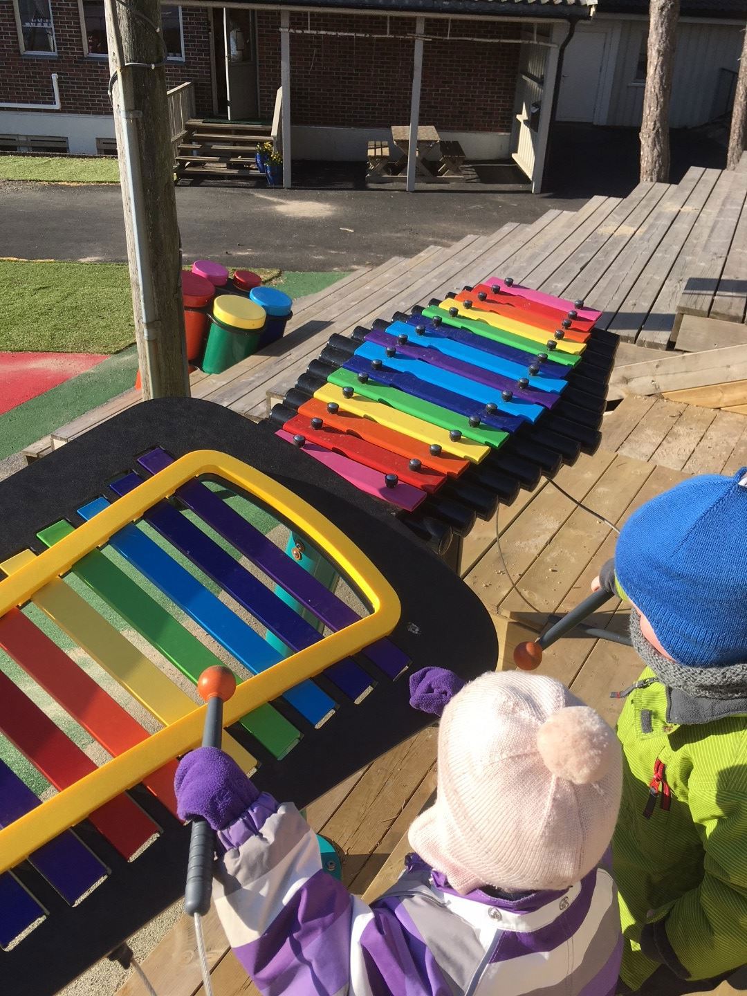 UTENDØRSKONSERTEN Ukentlig er avdelingene samlet til denne begivenheten. Som regel kan konserten oppleves i hundremeterskogen. Da er det sang, musikk, rim og regler. Ofte nyttes instrumenter plukket i skogen og alltid akkompagneres vi av fuglenes livlige sang.